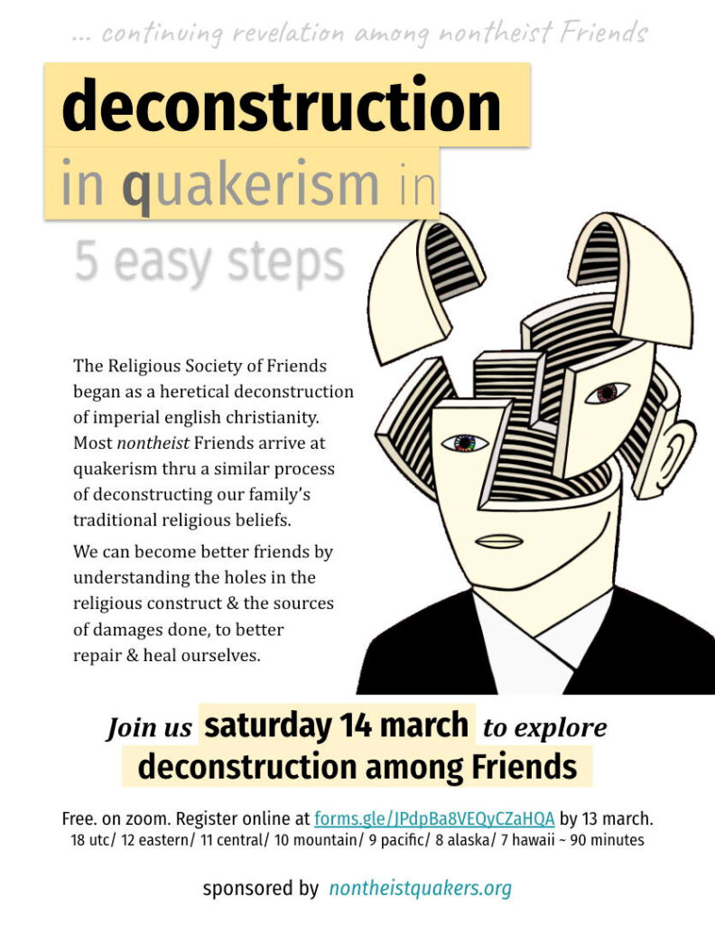 Most nontheist Friends arrive at quakerism thru a similar process of deconstructing our family’s traditional religious beliefs.
